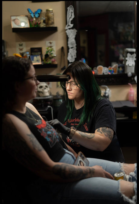 Hannah is a talented tattoo artist who honed her skills under the guidance of shop owner Gypsy during her year-long apprenticeship. With a background as a professional artist and graphic designer, she brings a unique artistic vision to her work. While she enjoys exploring various styles, Hannah has a particular passion for neotraditional and American traditional colorwork, as well as delicate black and grey fine line work. Her dedication to her craft shines through in every piece she creates.